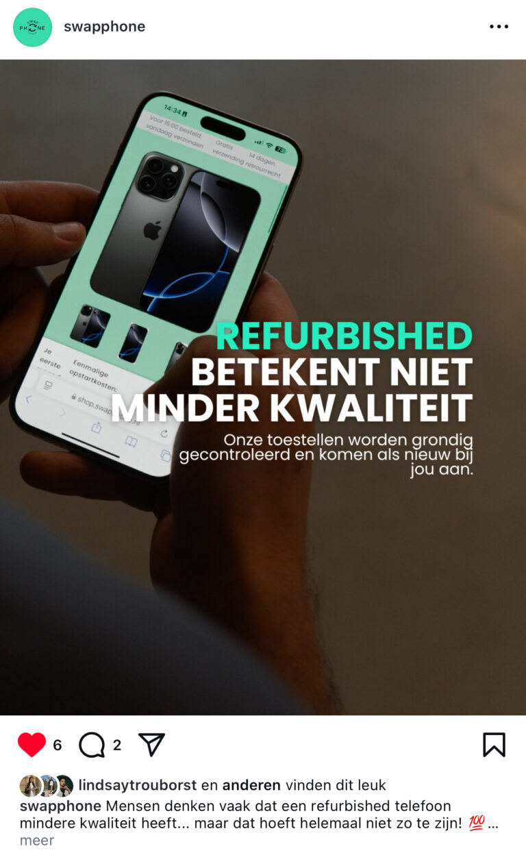 Swapphone is een duurzaam telefoonconcept met een duidelijke missie: refurbished telefoons toegankelijk en aantrekkelijk maken voor een brede doelgroep. Ze combineren duurzaamheid met betaalbaarheid door zorgvuldig geselecteerde smartphones aan te bieden die er weer als nieuw uitzien en functioneren.